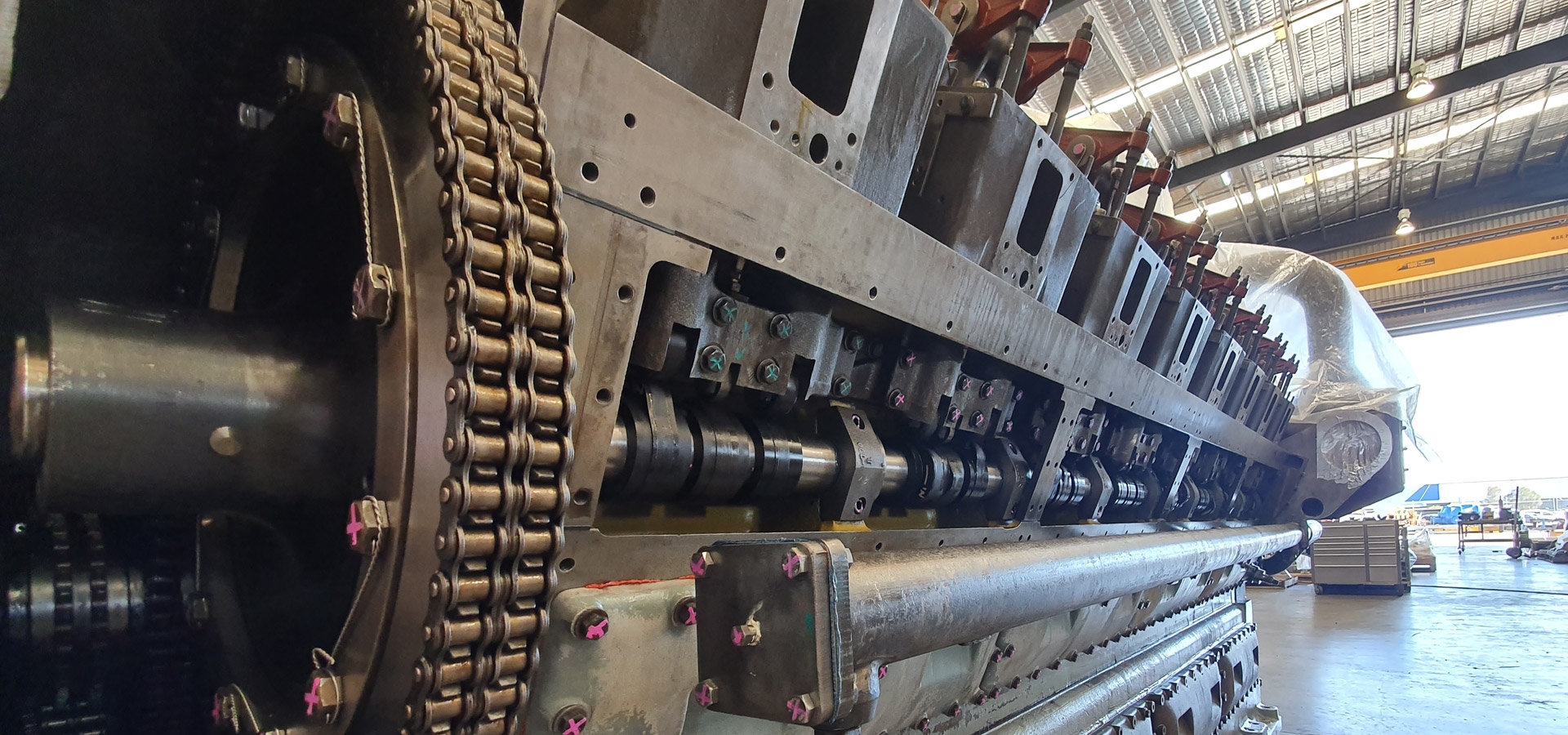 A 2004 fleet Waukesha 7042GSI – Ariel JGK 4/3 needed to be converted into a 1,478 HP / 1,200 RPM high-pressure injection unit with a 4,000 psig discharge. The retrofit required a multi-stage rebuild. Due to the scale of the work, overhead cranes were required to lift items too heavy for manual handling.